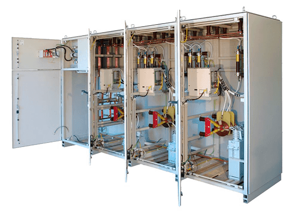 Disponibles para tensiones nominales desde 480V hasta 1140V, y para compensación en media tensión (MT) mediante transformadores elevadores, con una capacidad máxima de 1000A por unidad. Varias unidades pueden conectarse en paralelo para aplicaciones que requieran mayor potencia. - Excelente Mitigación de Armónicas: